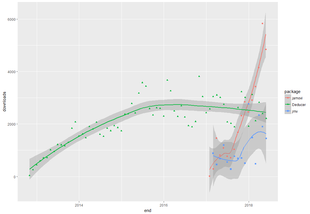 When choosing a GUI, one of the most fundamental questions is: what can do for you? What the initial software installation of each GUI gets you is covered in the Graphics, Analysis, and Modeling section of this series of articles. Regardless of what comes built-in, it’s good to know how active the development community is. They contribute “plug-ins” which add new menus and dialog boxes to the GUI. This level of activity ranges from very low (RKWard, BlueSky, Deducer) through moderate (jamovi) to very active.